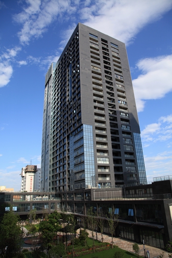 金域名都五期12#樓由主樓及地下室、沿街商業(yè)等組成,建筑總面積:59810.5平方米,其中地上51304.6平方米,地下8505.9平方米。其中商業(yè)建筑面積為8319.7平方米, 辦公建筑面積為42828.3平方米,主樓部分地面以上為28層,裙樓部分為地面以上為2層,建筑最大高度95.55m,裙樓高度12.8m。地下室2層,基礎(chǔ)埋深約7m,分別為人防區(qū)和非人防區(qū)。人防工程防護等級為二個甲類核六級、常六級二等人員掩蔽所,人防工程面積分別為1845平方米和1943平方米;一個物質(zhì)庫,人防工程面積分別為2725平方米;一個人防柴油移動電站。非人防區(qū)為地下車庫、庫房及設備用房。整個場區(qū)建筑群布置合理,高層建筑物為南北朝向,高度錯落有致;最大限度拓展景觀視野;采光、通風良好。