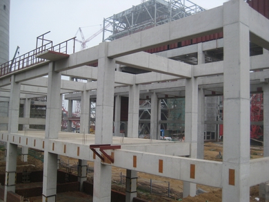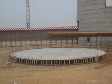 國電滎陽2×600MW機(jī)組脫硫島工程包括1#、2#室外構(gòu)筑物、電控樓、廢水處理車間、工藝樓等構(gòu)筑物,其中1#、2#室外構(gòu)筑物均包括有:吸收塔基礎(chǔ)、增壓風(fēng)機(jī)基礎(chǔ)及檢修支架、煙道支架、循環(huán)泵基礎(chǔ)及循環(huán)泵房、室外道路等。