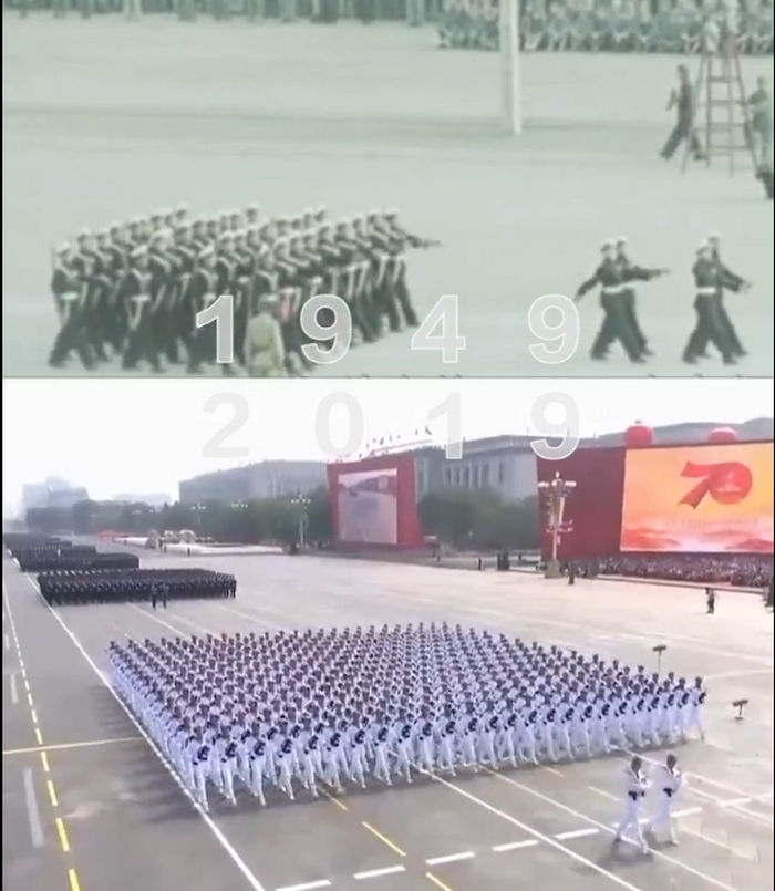 中國,從70年前的“小米加步槍”到現(xiàn)在的“縱橫萬里海疆,勇闖遠(yuǎn)海大洋”戰(zhàn)旗方隊(duì)浩蕩而來,曾經(jīng)形單影只的護(hù)旗車一去不返。
