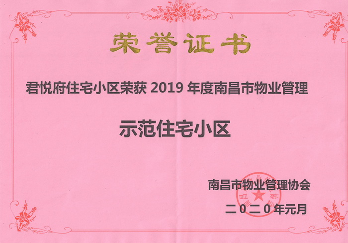 2019年12月11日,南昌市物業(yè)管理協(xié)會(huì)發(fā)布《關(guān)于通報(bào)表彰2019年度南昌市物業(yè)管理示范項(xiàng)目的通知》,高能物業(yè)服務(wù)的君悅府項(xiàng)目、中鼎瓏園項(xiàng)目名列其中,雙雙榮獲“2019年度南昌市物業(yè)管理示范住宅小區(qū)”稱號(hào)。2020年1月4日在泰納克酒店舉行了隆重的授牌儀式。