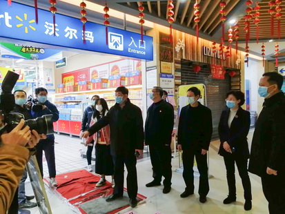 2020年3月9日,新余市市委書記蔣斌、市長(zhǎng)猶?等一行人赴新余市高能廣場(chǎng)檢查沃爾瑪超市及高能廣場(chǎng)疫情防控情況。蔣斌書記、猶?市長(zhǎng)實(shí)地察看了高能廣場(chǎng)商業(yè)經(jīng)營(yíng)安全環(huán)境和疫情防控情況,并到高能廣場(chǎng)、沃爾瑪?shù)热巳好芗瘓?chǎng)所重點(diǎn)檢查防疫工作。