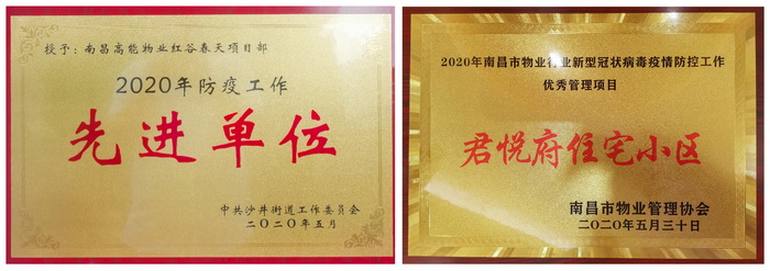 2020年6月3日,在南昌市物業(yè)管理協(xié)會舉辦的“南昌市物業(yè)服務行業(yè)在新型冠狀病毒疫情防控工作中表現(xiàn)突出的先進集體、優(yōu)秀管理項目”表彰大會上,江西高能物業(yè)管理有限公司(以下簡稱“高能物業(yè)”)服務的君悅府住宅小區(qū)被評為“優(yōu)秀管理項目”。這是繼2020年5月高能物業(yè)紅谷春天服務中心獲中共沙井街道工作委員會“防疫工作先進單位”之后的又一殊榮。