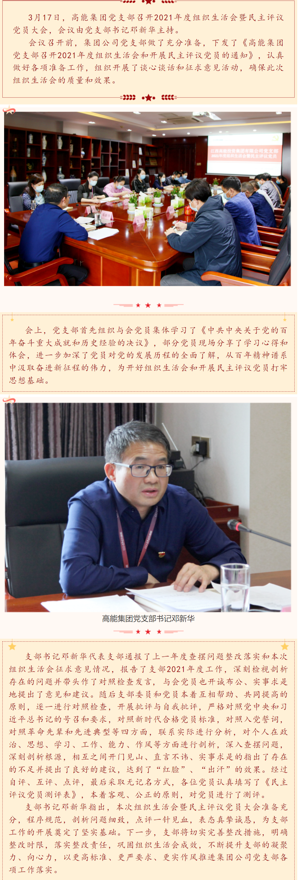 高能集團(tuán)黨支部召開2021年度組織生活會暨民主評議黨員大會