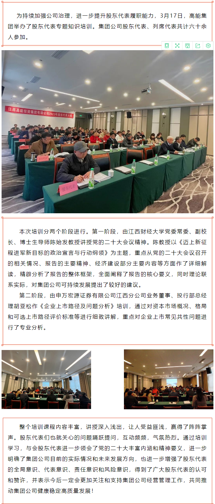 高能集團(tuán)舉辦股東代表專題知識(shí)培訓(xùn)