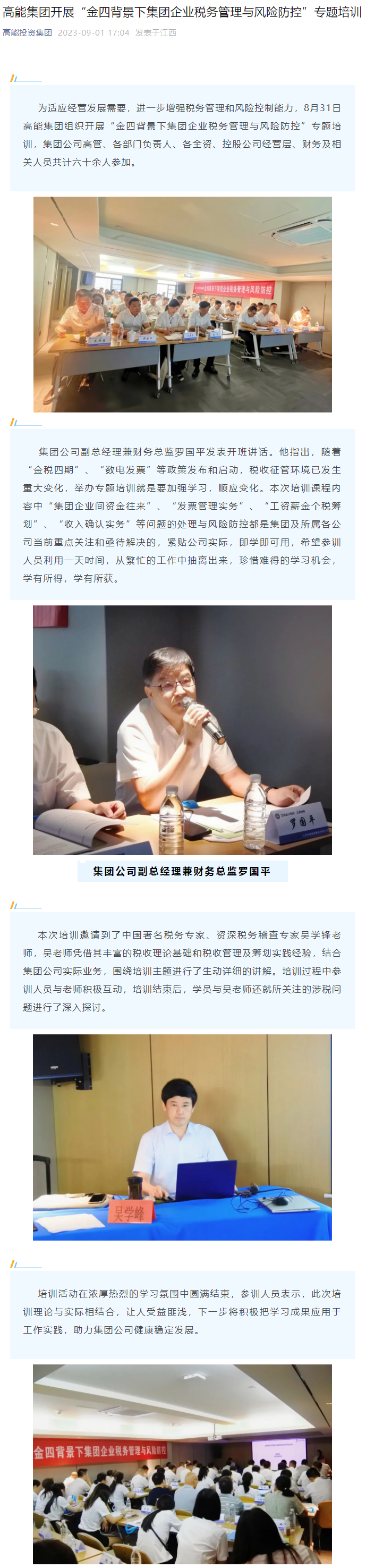 高能集團(tuán)開展“金四背景下集團(tuán)企業(yè)稅務(wù)管理與風(fēng)險(xiǎn)防控”專題培訓(xùn)