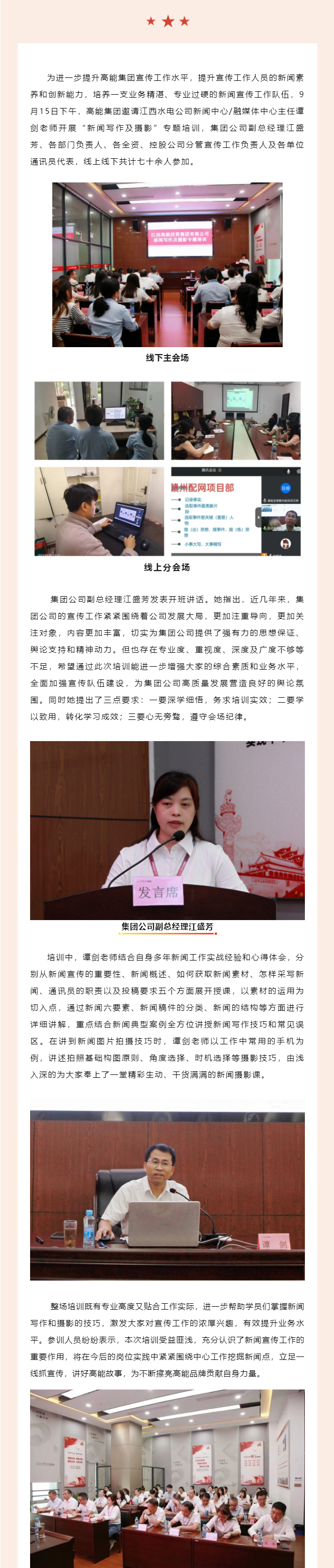 高能集團(tuán)開(kāi)展“新聞寫(xiě)作及攝影”專(zhuān)題培訓(xùn)