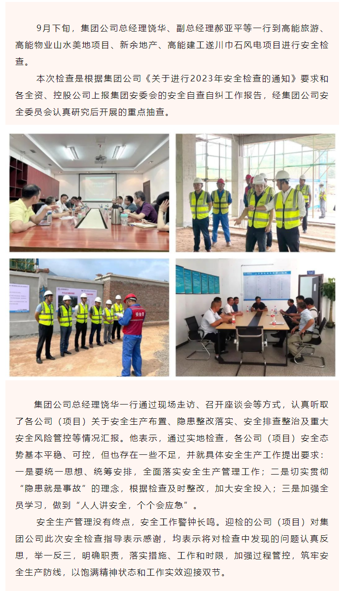 集團(tuán)公司總經(jīng)理饒華一行對(duì)重點(diǎn)公司(項(xiàng)目)進(jìn)行安全生產(chǎn)檢查指導(dǎo)