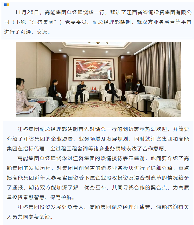 高能集團(tuán)總經(jīng)理饒華赴省咨詢投資集團(tuán)公司進(jìn)行商務(wù)拜訪