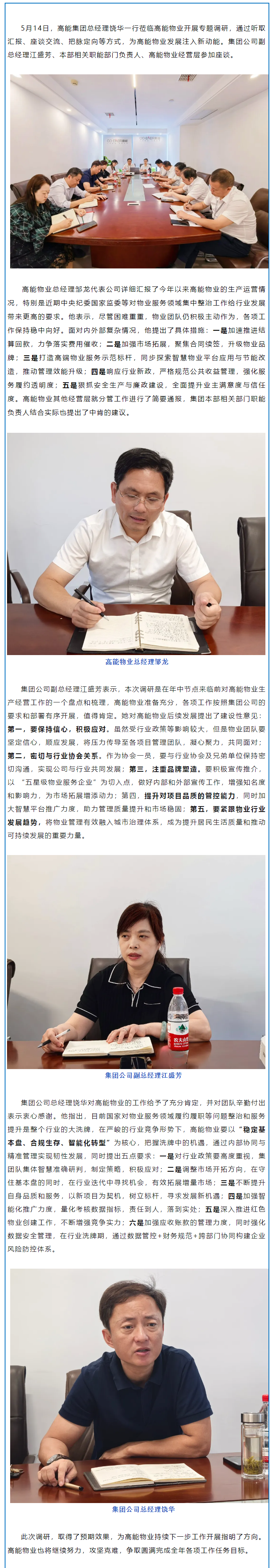 凝聚發(fā)展共識(shí) 共繪奮進(jìn)藍(lán)圖——高能集團(tuán)總經(jīng)理饒華一行深入高能物業(yè)調(diào)研指導(dǎo)